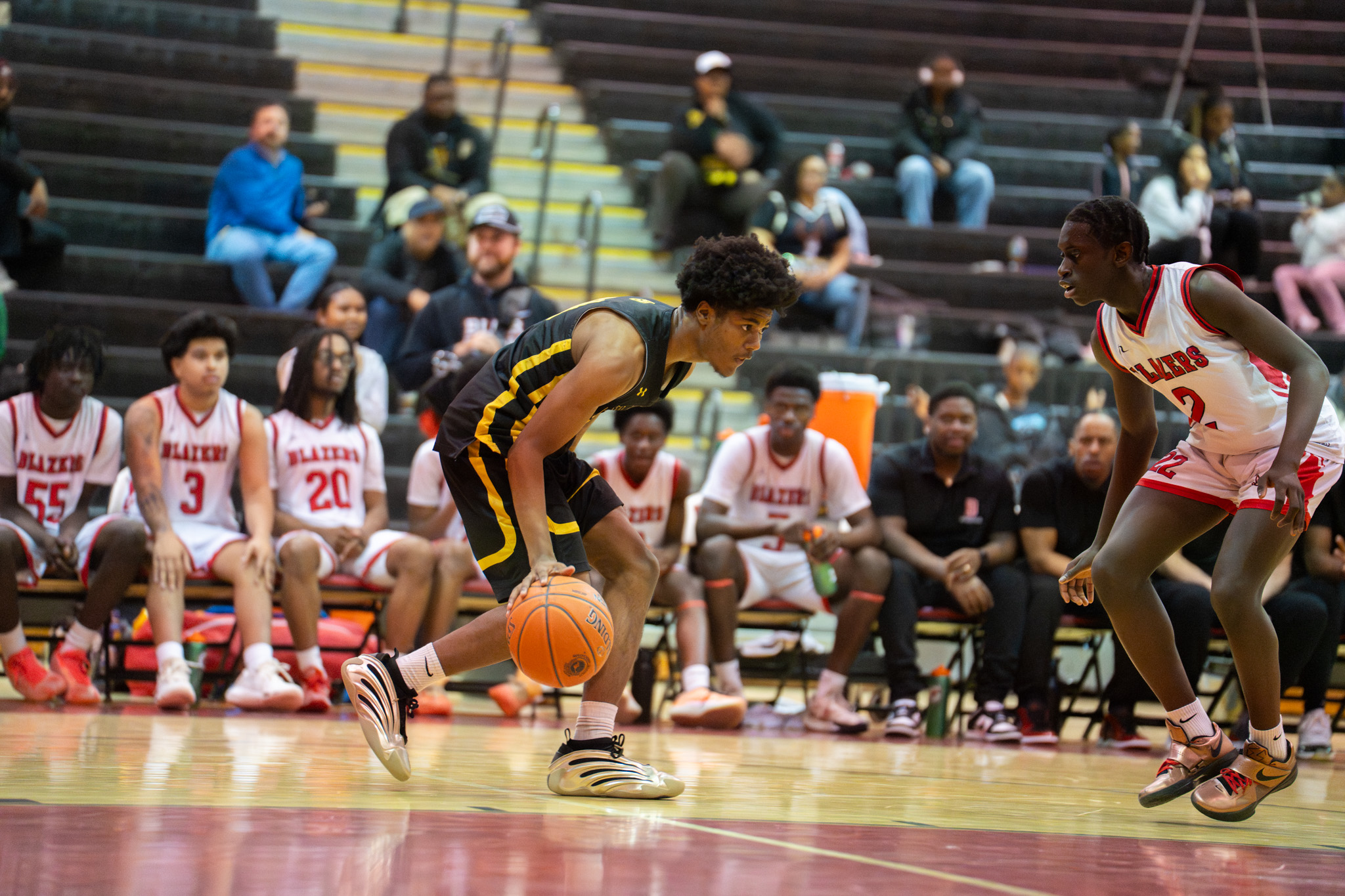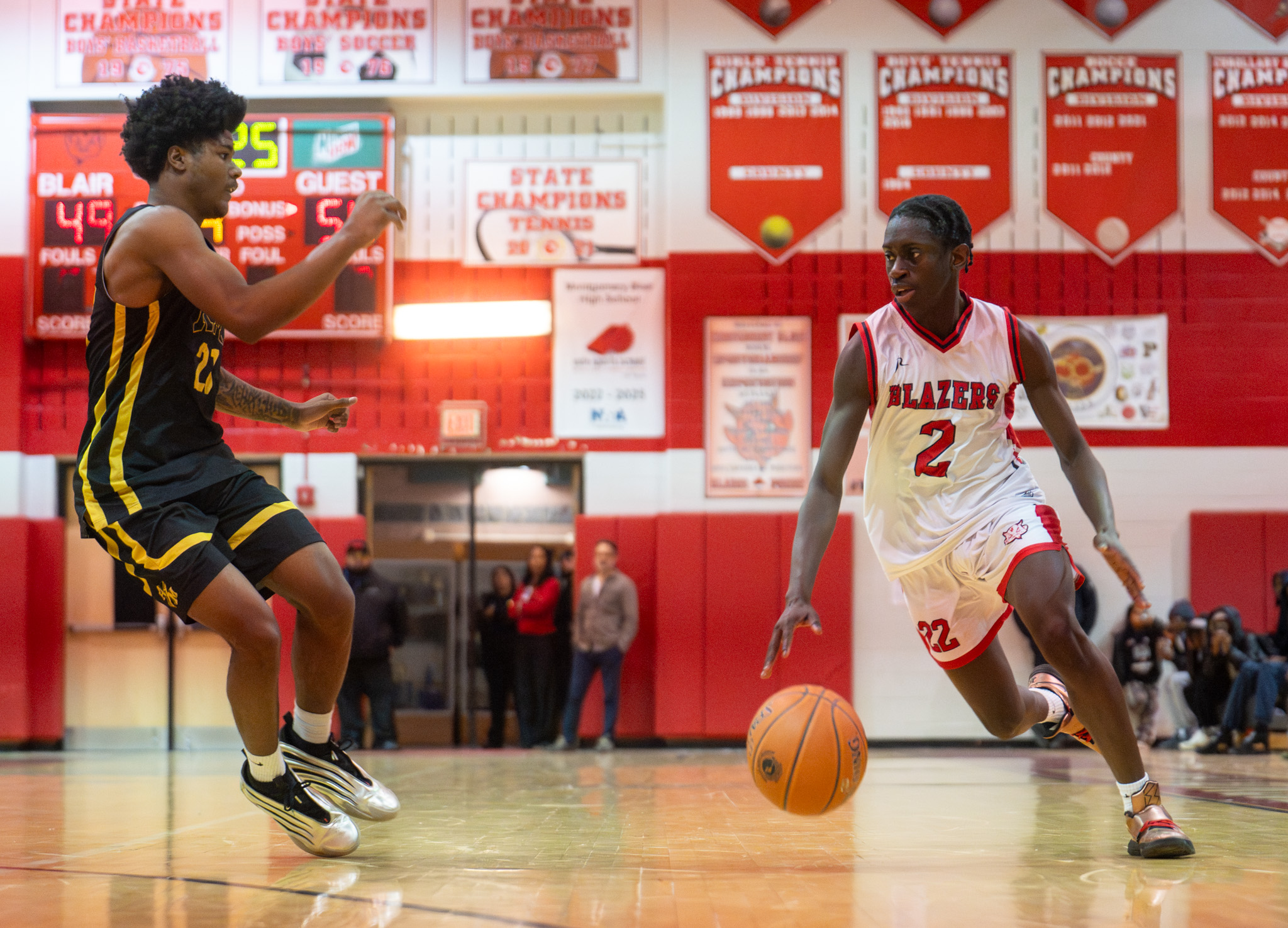 Photo: Blair #10 contests RM's three point attempt