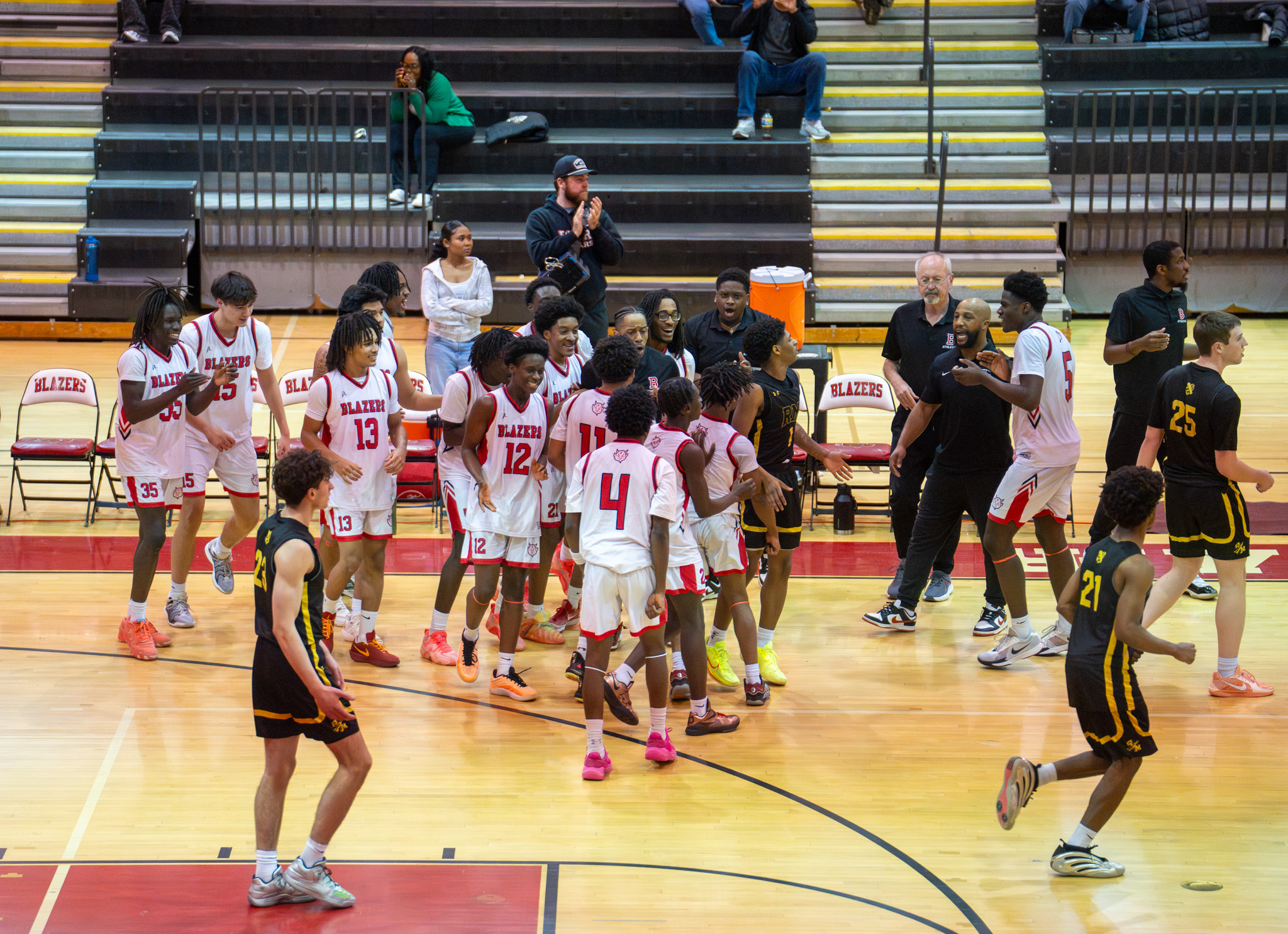 Blair players celebrate after a tight victory
