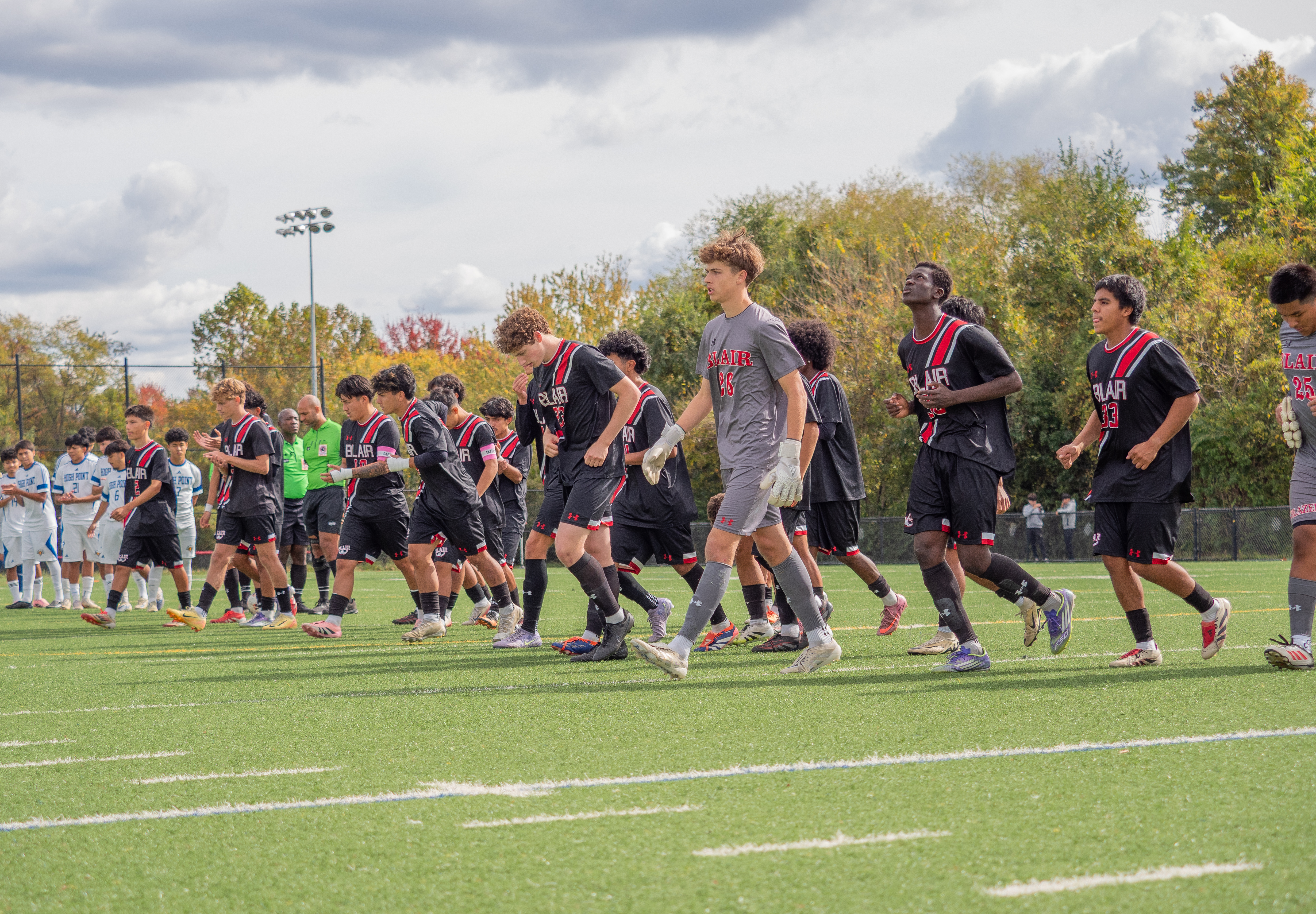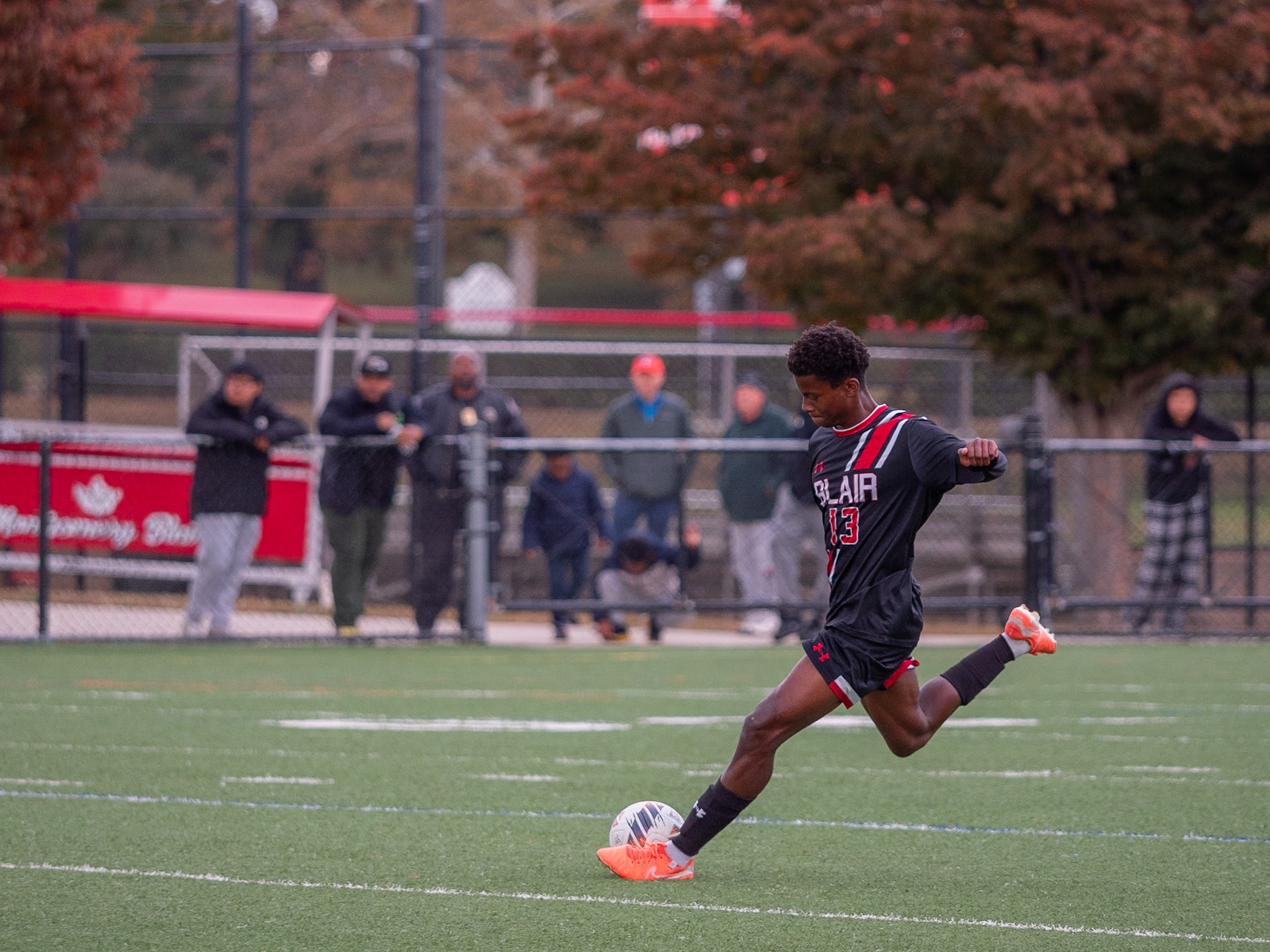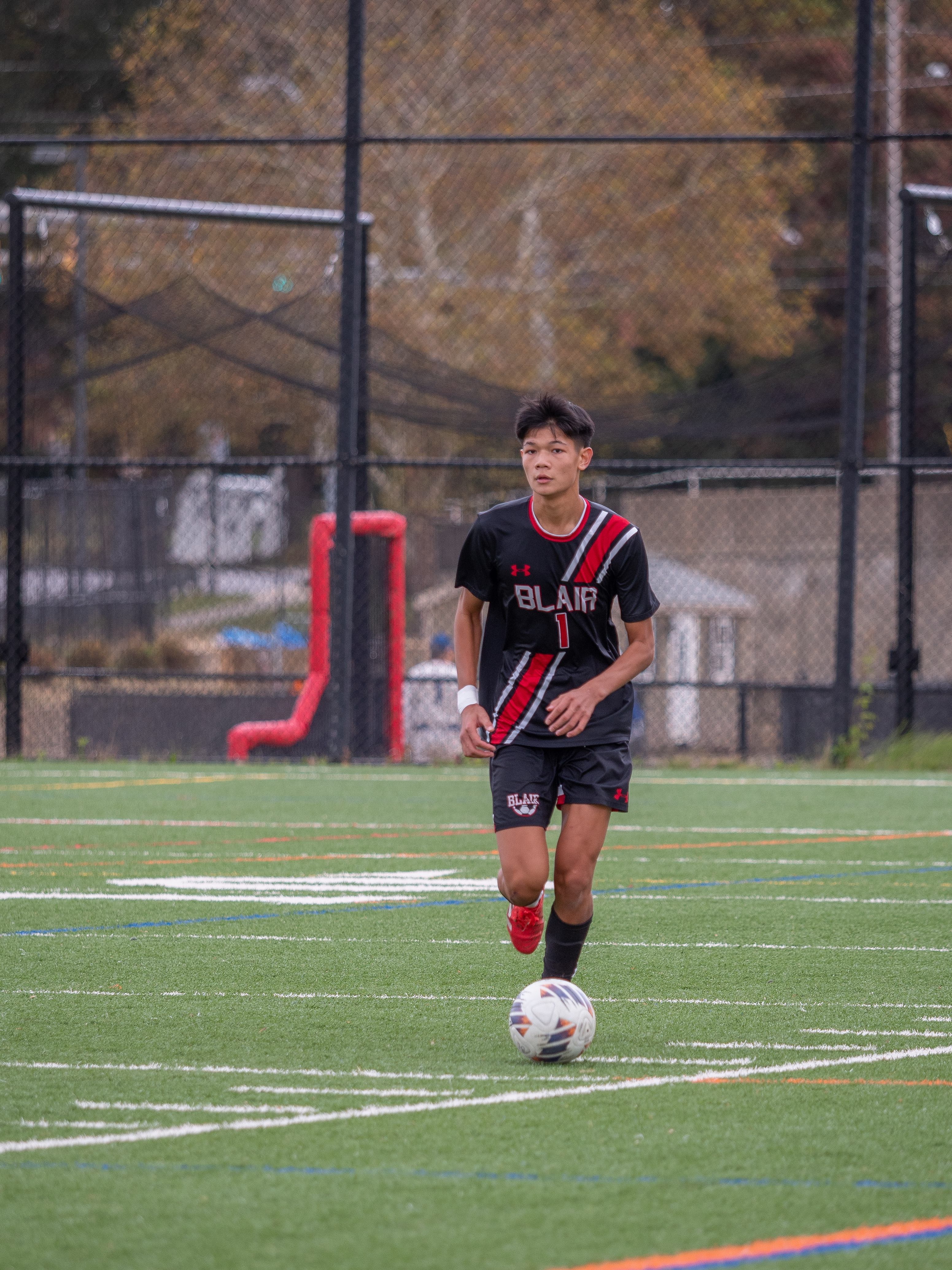 Photo: Blair's #13 Myko Idiokitas (Grade 12) clearing the ball in the final seconds