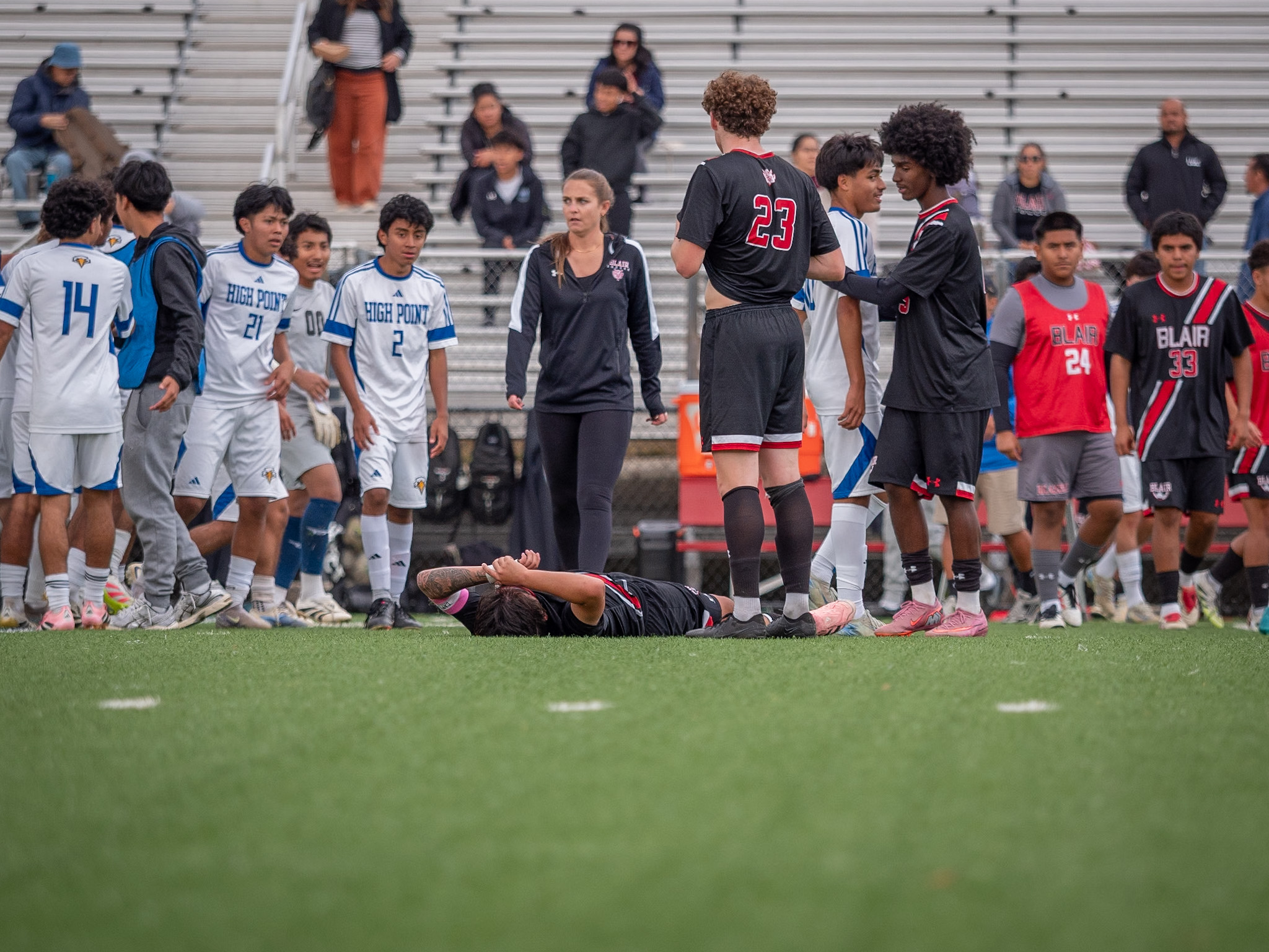Blair's #11 Julian Alavarez (Grade 11) and #22 Josue Sermenos (Grade 10) reaction to the loss