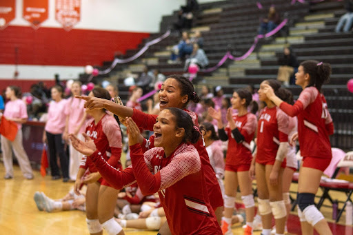 Even before the game started, the energy in the gym was abundant. Ribbons and balloons decorated the room, and players were wearing pink shirts while they warmed up.